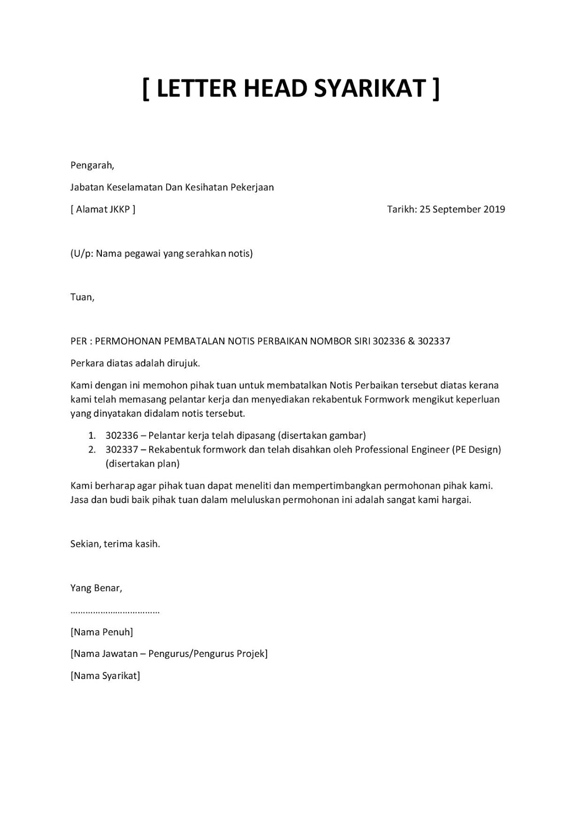 Surat rasmi permohonan sst selangor l.